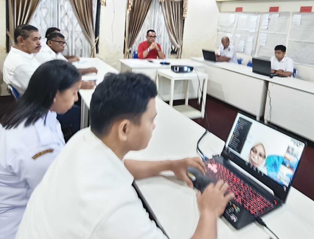 Rapat yang dilaksanakan pada Ruang Rapat Kadis Diskominfo Maluku ini turut dihadiri oleh Kepala Bidang Persandian dan Kepala Bidang Aptika Diskominfo Provinsi Maluku beserta staf. (Diskominfo Maluku/ZM).